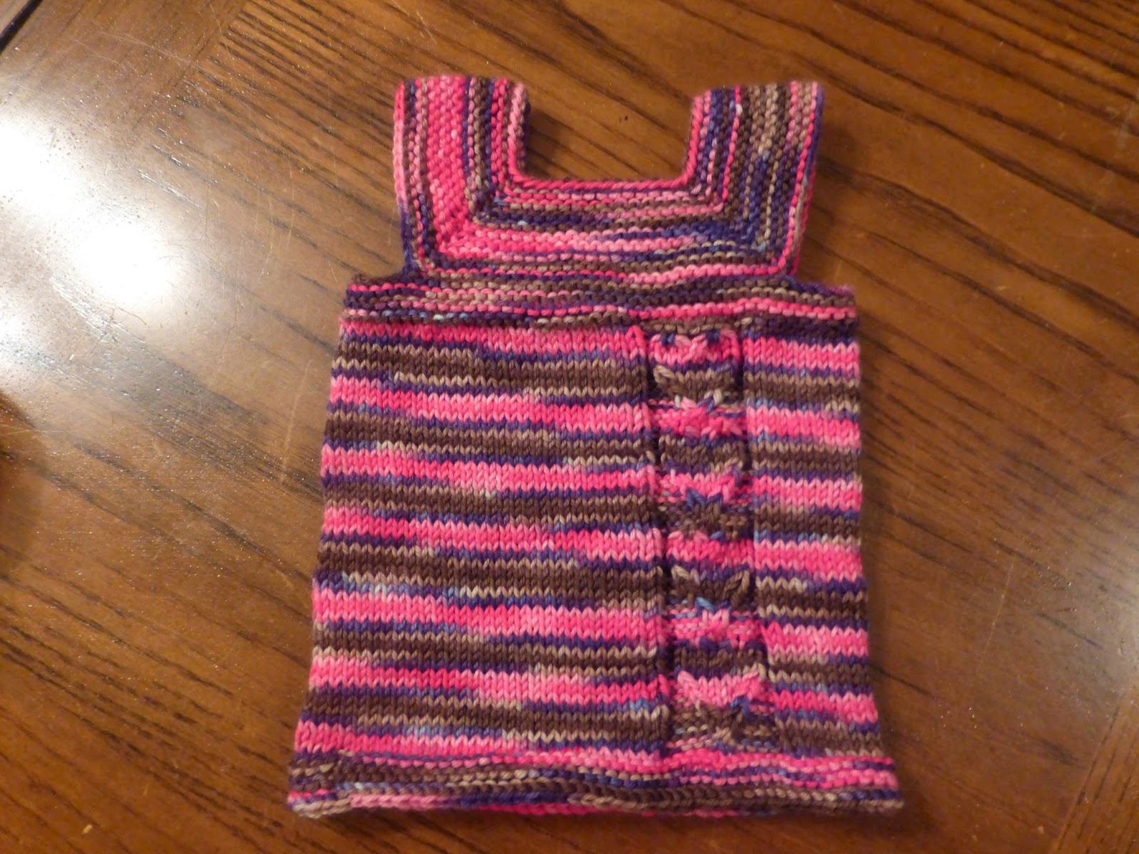 I bought this yarn intending to make a vest like this for Brenna, but I never got around to it. We decided that it would look adorable on Baby Brenda instead.